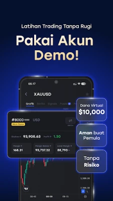 Latihan trading dulu tanpa risiko uang sungguhan. Ideal untuk belajar strategi trading.