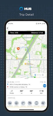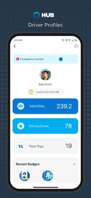HUB Drive Safe helps improve your driving by using smartphone sensors to measure your driving behavior from trip origin to destination and score you against other drivers using the app. By taking training associated with identified behaviors, the app enables you to avoid behaviors that can contribute to accidents. In the event of an accident, HUB Drive Safe lets you and/or the company you are driving for notify your emergency contacts and initiate an insurance claim. Also, HUB Drive Safe allows your manager to set designated work hours so that they monitor your behavior only while you are working.