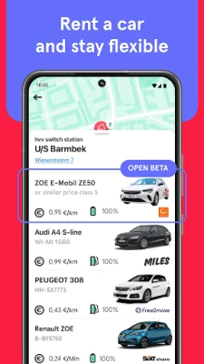 • Easy to rent: cars from Free2move, SIXT share, MILES & Cambio