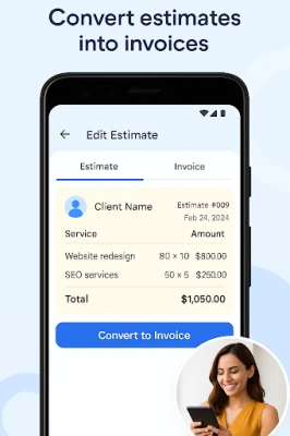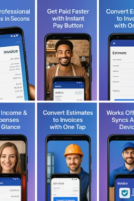 Invoice Maker & Billing App is the fastest invoice generator, estimate maker and receipt creator for Android. Create professional invoices, estimates, receipts and bills right from your phone. Built for contractors, freelancers and small-business owners, it combines the best-loved features of top-rated apps like Invoice Simple and Billdu while adding real-time payment tracking and offline mode.