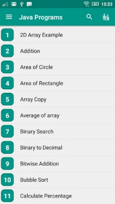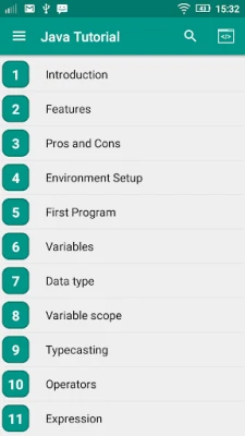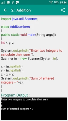 1. Complete Java Tutorials. 2. Large Collection of Java Programs with Output. 3. FAQ (Interview Questions and Answers) 4. Simple User Interface. 5. Search Tutorials and Programs. 6. Share Tutorials and Programs with Single Click. 7. Free Full Version App