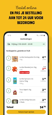 Met de vernieuwde Jumbo app doe je nóg slimmer boodschappen. Of je nu thuis bestelt of in de winkel staat, je hebt alles bij de hand: van je boodschappenlijst tot je Jumbo Extra’s pas. Ontdek het gemak van online bestellen en spaar punten voor gratis Extra’s. Je profiteert van de service, ruime keuze en topkwaliteit producten tegen lage prijzen, die je van ons gewend bent.