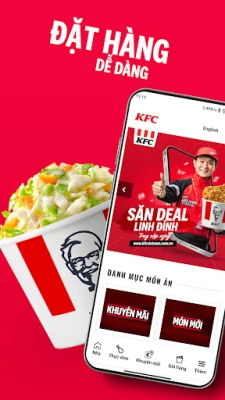 - KFC Việt Nam giới thiệu ứng dụng miễn phí dành cho người dùng smartphone. Với ứng dụng miễn phí này, khách hàng có thể xem và trực tiếp đặt hàng món ăn online. Thực đơn ưa thích của khách hàng sẽ được ghi nhớ và ứng dụng sẽ gợi ý cho khách hàng trong lần đặt hàng kế tiếp. Là người đầu tiên nhận được thông tin mới nhất cập nhật về chương trình khuyến mại, giảm giá hấp dẫn của KFC. Ngoài ra, khách hàng còn có thể tìm kiếm địa chỉ các nhà hàng KFC gần nhất và sơ đồ đường đi thông qua Google Maps.