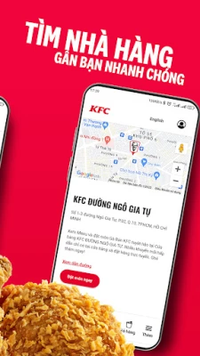 - Tính năng: + Đặt hàng món ăn KFC trực tuyến. + Nhận thông tin cập nhật, các chương trình khuyến mại mới nhất từ KFC. + Tìm địa chỉ và đường đi đến nhà hàng KFC gần nhất. + ... cùng nhiều tính năng thú vị khác.
