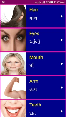 2. Each English word has a clear image 📸🖼️ and audio pronunciation 🎵🔊 to make Learning English via Gujarati Easy.