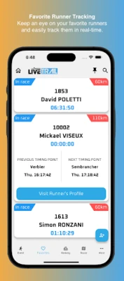 Favorite Runner Tracking 👟: Keep an eye on your favorite runners and easily track them in real-time.