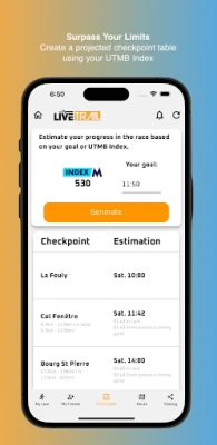 Push Your Limits💪: Formulate a pre-filled projected checkpoint schedule based on your ultimate goal, thoughtfully recommended through your UTMB index. Then, virtually trail this runner in real-time and give it your all!