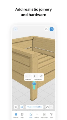 Easy and intuitive to use, MakeByMe allows you to design any DIY project using real material, tools and joinery methods. Simple add from the library of standard DIY materials such as 2x4 or plywood, then drag, rotate and snap your material quickly into position. Some design features are;