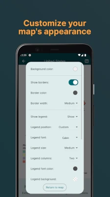 · Color your World: Pick your favorite colors and start painting your map. Add a legend to the map, change its background, or use patterns. Easy and fun!