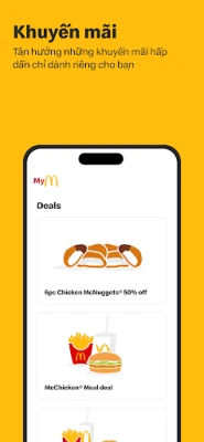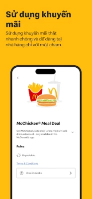 Ứng dụng cung cấp cho bạn rất nhiều khuyến mãi hấp dẫn của McDonald's. Các khuyến mãi và giảm giá sẽ được cập nhật thường xuyên, vì vậy bạn đừng quên kiểm tra ứng dụng đều đặn.