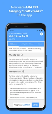 With a new enhancement, clinicians can now earn AMA PRA Category 1TM CME credits by simply reading the clinical content for 150+ calculators. The app will keep track of the CME credits earned in a personal dashboard, where users can also redeem credits for certificates and access their receipts for easy documentation. In order to redeem CME credits, users will need to sign up for a paid CME plan.