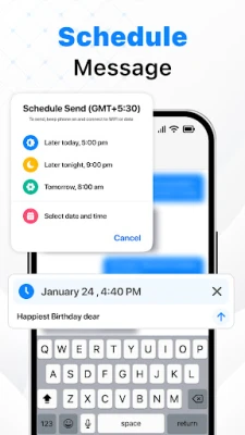 Write messages sms now and send them later perfect for birthdays, meetings, or reminders. Never forget to say the right thing at the right time!