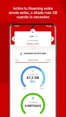 - Consulta las llamadas realizadas, SMS enviados o los Gigas consumidos. Podrás filtrar tu consumo, diferenciándolo entre nacional, dentro de la UE o fuera de la UE y establecer avisos de consumo. Recuerda que también cuentas con un Widget que te permitirá conocer tu consumo diario sin necesidad de abrir la App.