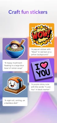 • Nhãn dán: làm sinh động tin nhắn của bạn bằng cách tạo nhãn dán vui nhộn bằng AI. Dễ dàng chia sẻ các nhãn dán này với bất kỳ ứng dụng nhắn tin nào trên điện thoại của bạn chỉ bằng một cú chạm.