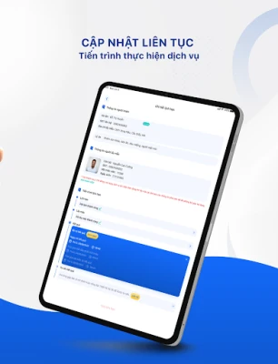 • Theo dõi tiến trình dịch vụ theo thời gian thực, nhận ngay các thông báo mới khi trạng thái tiến trình được cập nhật;