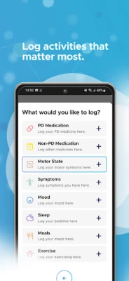 1. Automatically track your ON, OFF, and Dyskinesia states to see your symptoms and treatment response
