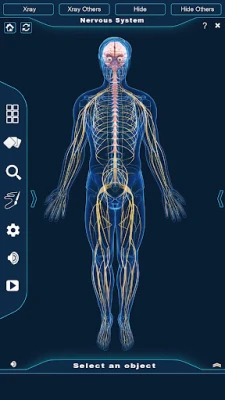 Nervous System Anatomy Pro. gives users an in depth look at the Nervous System. allowing them to select , xray view, hide and show parts of the Nervous System as well as view real time animation, draw or white on screen and share screenshots, Audio pronunciation for all anatomy terms and more.