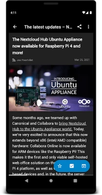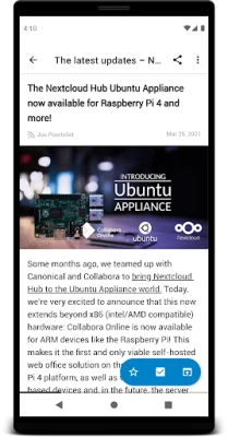 Die Nextcloud News App ermöglicht die Synchronisierung von Artikeln zwischen Android und der Webbasierten Nextcloud News Anwendung.