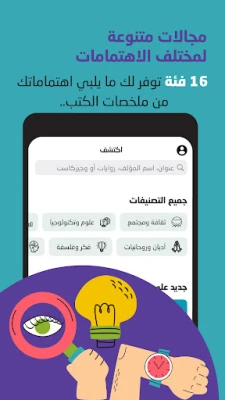 - أكثر من 3000 ملخصات كتب مسموعة ومقروءة، كما يتم إضافة مئات الكتب بشكل شهري على التطبيق