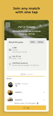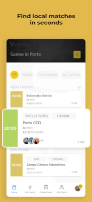 Browse available football matches near Porto and Lisbon. Choose your intensity, location, and time — then just show up and play football. It's that easy.
