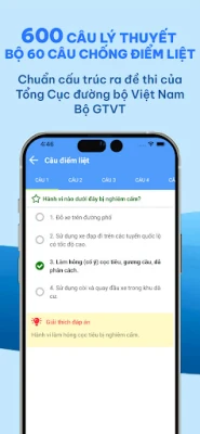 * Ôn thi GPLX với danh sách 60 câu hỏi điểm liệt được cung cấp riêng.