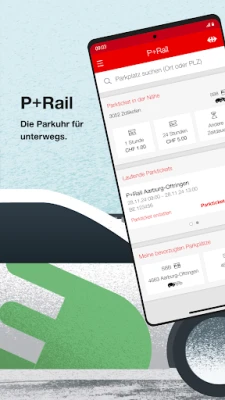 Mit der SBB P+Rail-App lösen Sie Ihr Parkticket schnell und bargeldlos. Die P+Rail-App vereint die SBB P+Rail-Parkplätze mit jenen der zehn Partnerbahnen (BLS, RhB, RBS, TPF, SOB, MGB, OeBB, AB, AVA und der Zentralbahn). Die Parkplätze von Parkingpay sowie eine Vielzahl an Parkplätzen von Gemeinden in der ganzen Schweiz runden das grösste Schweizer Parkplatzangebot in einer App ab.