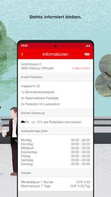 Die App weiss immer genau, welches Ihr nächster Parkplatz ist und erspart Ihnen somit den Weg zur Infotafel vor Ort.