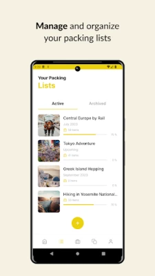 - Create and manage packing lists: Build and organize your packing lists seamlessly, and conveniently archive past trip lists for future reference.