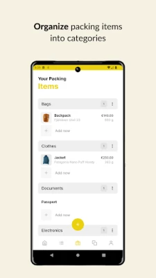 - Personalized inventory: Build your own inventory of packing items and complete the entries with weight, price, and even images for easy reference.