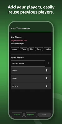 • Quick player registration for each tournament