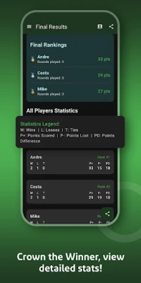 • View final rankings and statistics