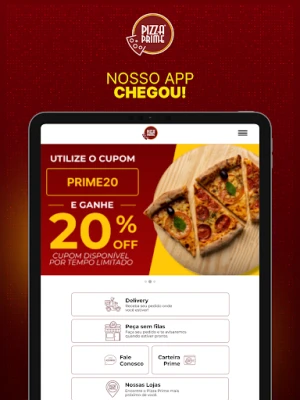 Com o app Pizza Prime você faz o pedido, paga e decide se prefere retirar na loja ou receber por delivery produtos com a qualidade que já conhece na palma da sua mão.