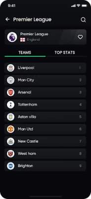 ⚽ Top Stats: Identify the top performers with ease. See who's leading the race for most goals, assists, shots on target, penalties scored, tackles won, and more, at both the league and team levels.