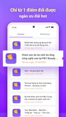 Kho voucher đặc quyền theo hạng thành viên, điểm thường cho khách hàng mới và voucher vào các ngày Lễ Tết/ sinh nhật. Tặng voucher đặc biệt mỗi khi khách hàng thăng hạng thành viên.