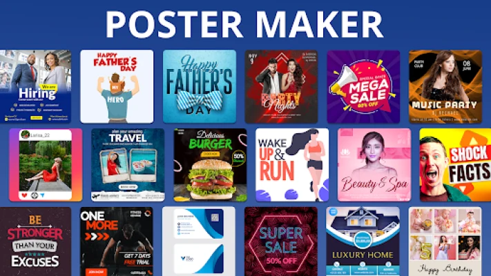Poster maker and flyer maker app with new cool features helps you to design posters, Advertisement banner, ad flyer, invitation cards, happy birthday greetings, music festival posters, motivational quotes and youtube thumbnail images. All kind of graphic design for social media, Instagram post and story.