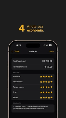 Após validar o voucher, avalie o atendimento do estabelecimento parceiro.