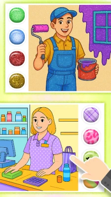 Coloring Game: Fill amazing professions coloring pages with bright colors, patterns, and stickers!