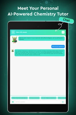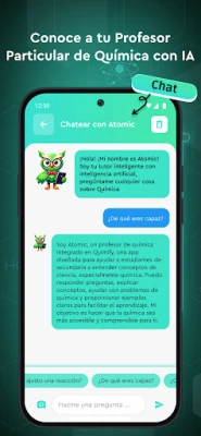 - Profesor particular con IA; chatbot disponible llamado Atomic que resolverá cualquier duda que tengas sobre química.