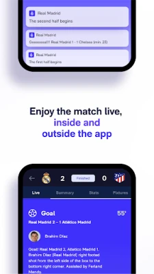 New Real Madrid App, the place where you can find all the football and basketball information with match pre-match coverage, live scores, post-match coverage, standings, exclusive news, and much more!