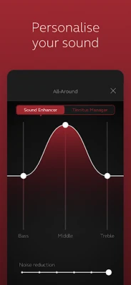 • Tinnitus manager: Adjust sound variation and frequency of the Tinnitus Sound Generator. Select Nature Sounds (feature availability depends on your hearing aid model and the fitting by your hearing care professional)
