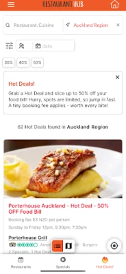 Restaurant Hub is your go-to app for finding exclusive Hot Deals, discounts, and offers at top restaurants across New Zealand. Whether you're looking to book a table for a special occasion or simply want to enjoy a meal at a great price, Restaurant Hub makes it easy to explore dining options near you.