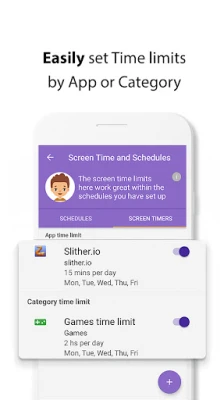📱 App Usage Control:Set limits on games like Candy Crush and Talking Tom to help your child balance screen time with other activities, promoting healthier habits.