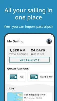 Rich Logbook Entries: Our digital logbook allows you to capture every detail of your journeys at sea with just a tap. Simply click to start and stop GPS tracking for your voyage. This information is invaluable for improving your sailing strategies and maintaining a historical record of your experiences.