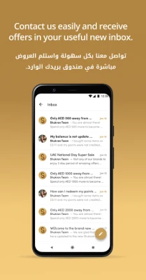 • Receive personalized coupons and offers right from your Home screen • Access your receipts and transactions • Use Inbox to instantly message your feedback to Shukran and receive great offers • Control your email, text and push communication preferences in a snap from My Account