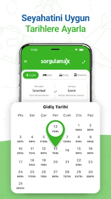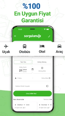 SORGULAMAX, tüm seyahat ihtiyaçlarınızı tek bir platformda sunarak, planlamanızı çok daha kolay ve hızlı hale getiriyor. Uçak bileti, otobüs bileti, otel rezervasyonu ve araç kiralama gibi işlemleri karşılaştırarak en uygun fiyatlarla işlemlerinizi tamamlayabilirsiniz. Yurt içi ve yurt dışı seyahatleriniz için fırsatlarla dolu bir deneyim sizi bekliyor!