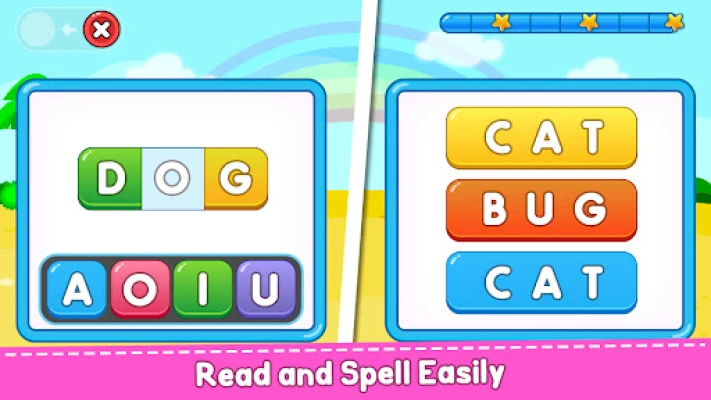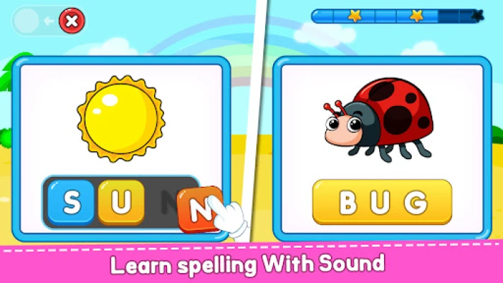 Well, you are at the right place as Spelling Games for Kids 2-5 year Old teaches your kid new English words with spelling, pronunciation and beautiful images. Specially, designed for toddlers and kids aged 3-5 who are eager to learn new words.