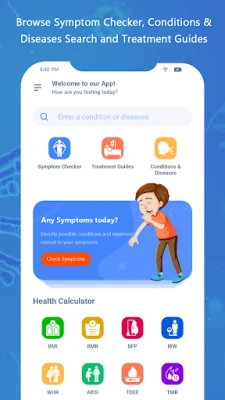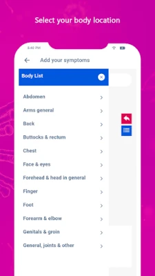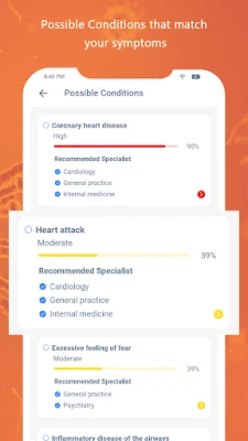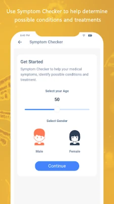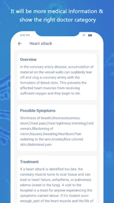 Symptom Checker app to help determine a list of possible diseases based on the diagnosis engine. It will be more medical information and show the right doctor category.