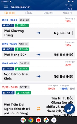 - Mua các cuốc xe tiễn hoặc đón sân bay Nội Bài. - Lái xe có các cuốc xe không thể thực hiện được có thể bán lại cho chúng tôi với tỉ lệ 80% thuộc về lái xe. - Quản lý các cuốc xe cá nhân.