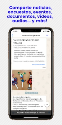 MULTIMEDIA: Envía textos, imágenes, encuestas, documentos, noticias, crea eventos con gestión de inscritos y ¡mucho más!