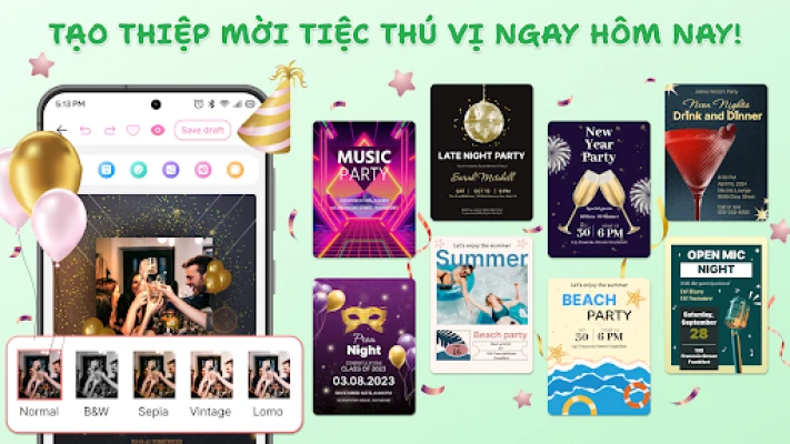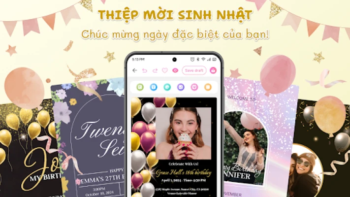 📍Làm cho bữa tiệc sinh nhật, lời mời chào em bé hoặc thiệp chúc mừng đám cưới của bạn trở nên nổi bật và thể hiện tình cảm, sự chân thành của bạn đến ngươời nhận trong từng chi tiết với ứng dụng Thiệp Chúc Mừng & Sinh Nhật. Hãy tải xuống ứng dụng và trải nghiệm ứng dụng Thiệp Chúc Mừng & Sinh Nhật, giúp bạn tự do bày tỏ và chia sẻ cảm xúc của mình với những người thân yêu trong các bữa tiệc.